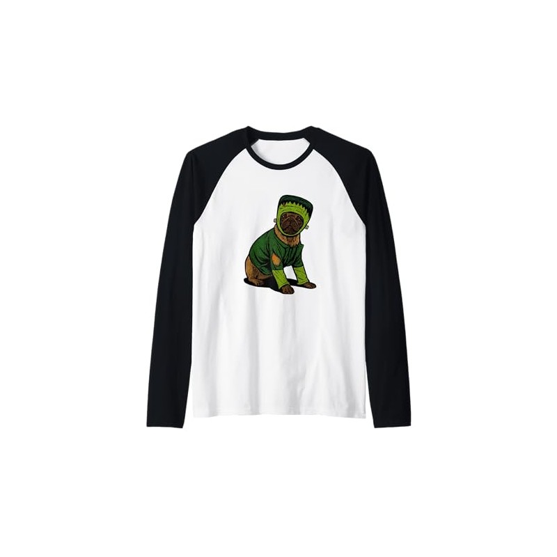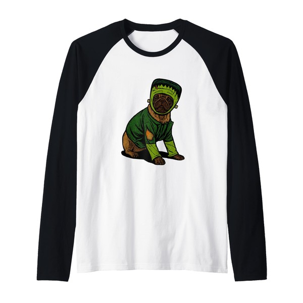 Frankenstein Pug in Green Costume Raglan Baseball Tee