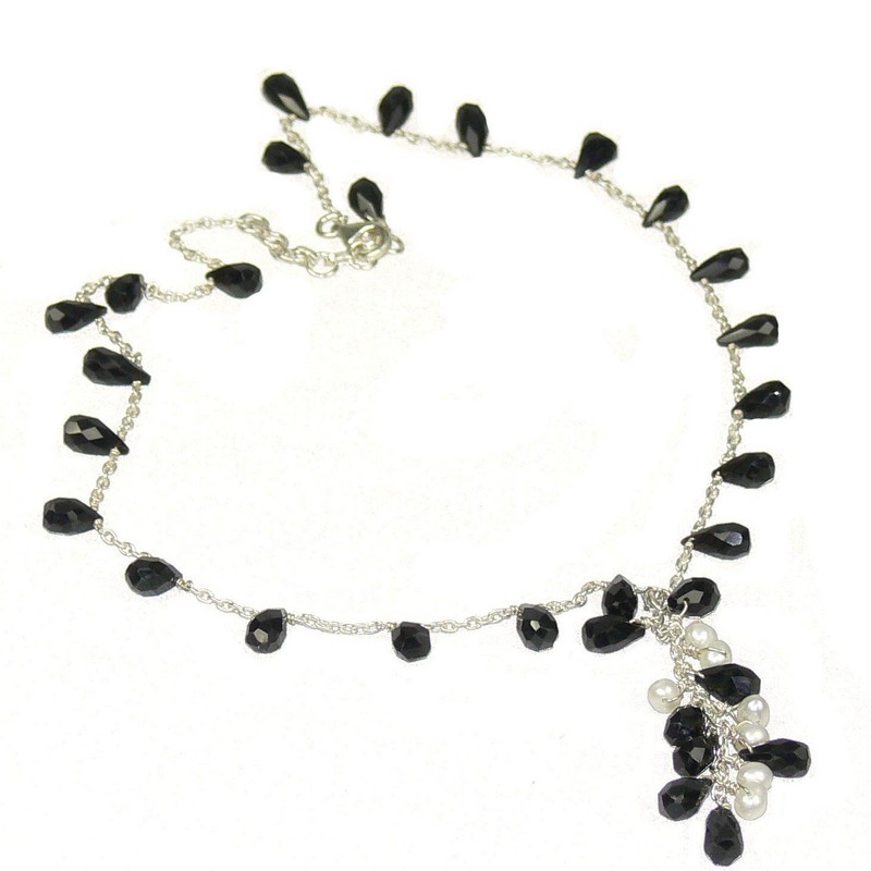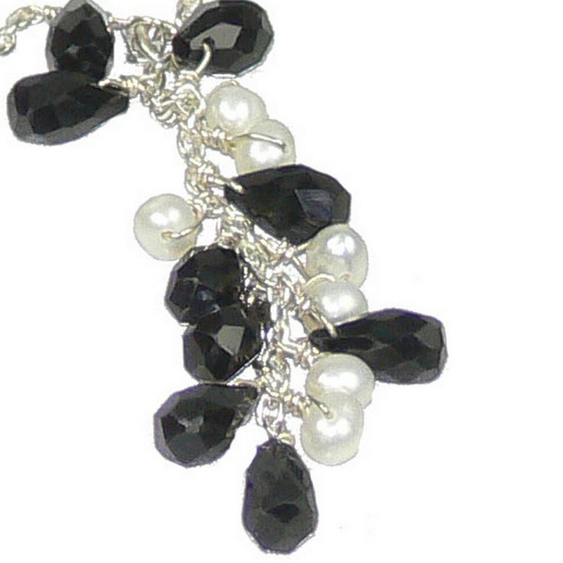 Franki Baker Elegant Black Onyx Gemstone & Pearl Necklace on 925 Sterling Silver Chain. Length: 45cm