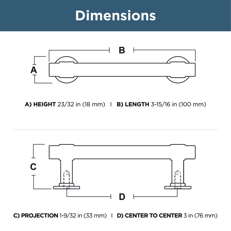 - SIZING: The collection of drawer pulls measures 3 (76mm) center-to-center and comes in a pack of 5.