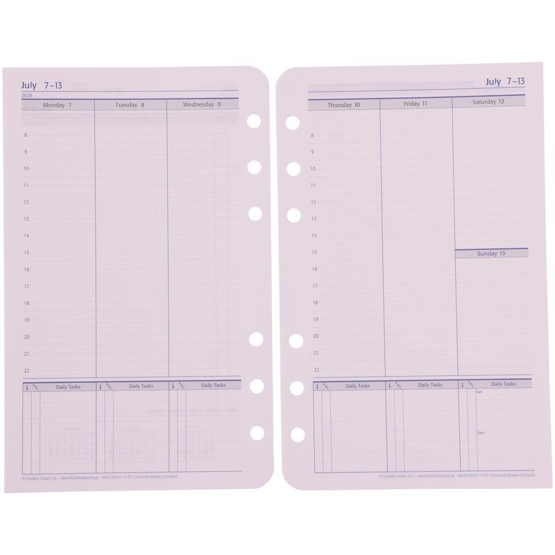 Franklin Planner 86462 Universal Weekly Refill, 12 Month Edition, Begins July 2025, Compact