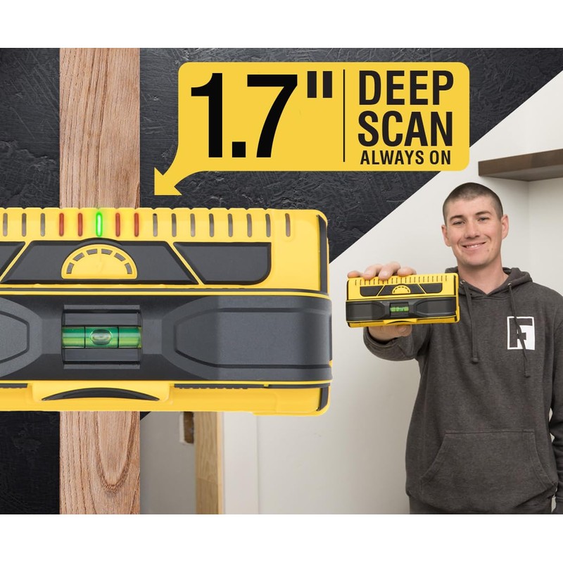 • EASY: One mode finds it all! It finds wood beams metal studs, pipes, live electrical wires, and the M210 stud finder auto-selects the most accurate mode for changes in material or depth. No toggling between standard-scan and deep-scan. Also, no calibration is required. Just press and hold the button to begin your scan. Additionally, you can start over a stud, unlike other stud sensors that give false readings. It is undoubtedly the most intuitive stud finder on the market