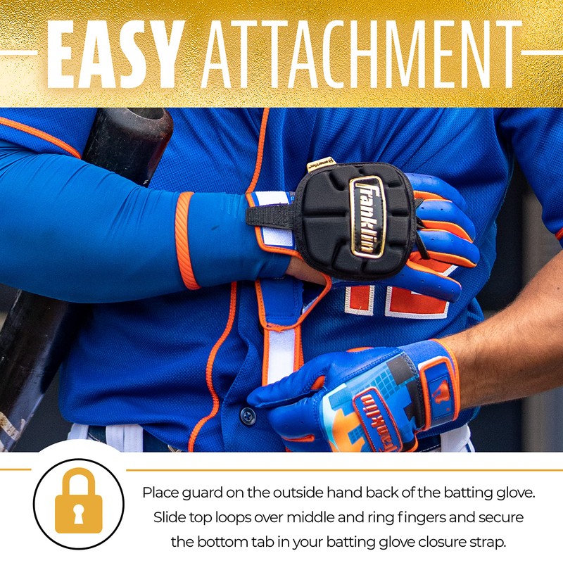 - EASY ATTACHMENT: Place on top of batting glove; slide top loops over middle and ring fingers and secure the bottom tab in your batting glove closure strap