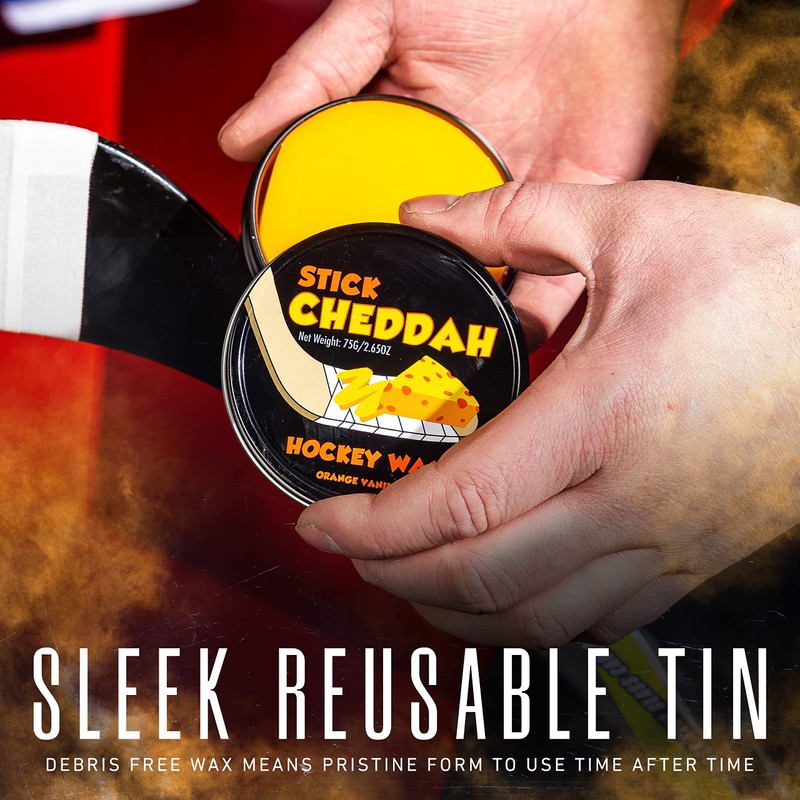 Franklin Sports Hockey Stick Wax - Maximum Grip Wax - Orange Vanilla Scent - Stick Cheddah - Reusable Tin Included