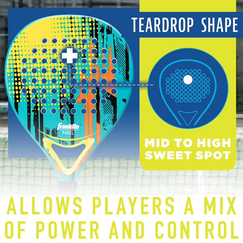 - TEARDROP SHAPE: The racket head is constructed with a mid - high sweet spot to allow for a mix of power and control