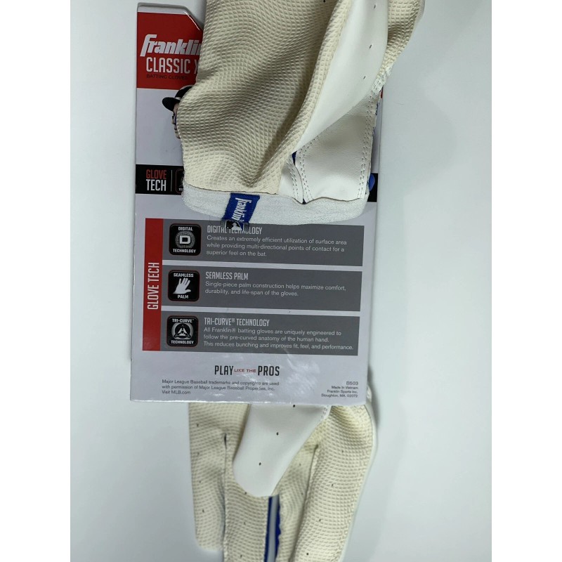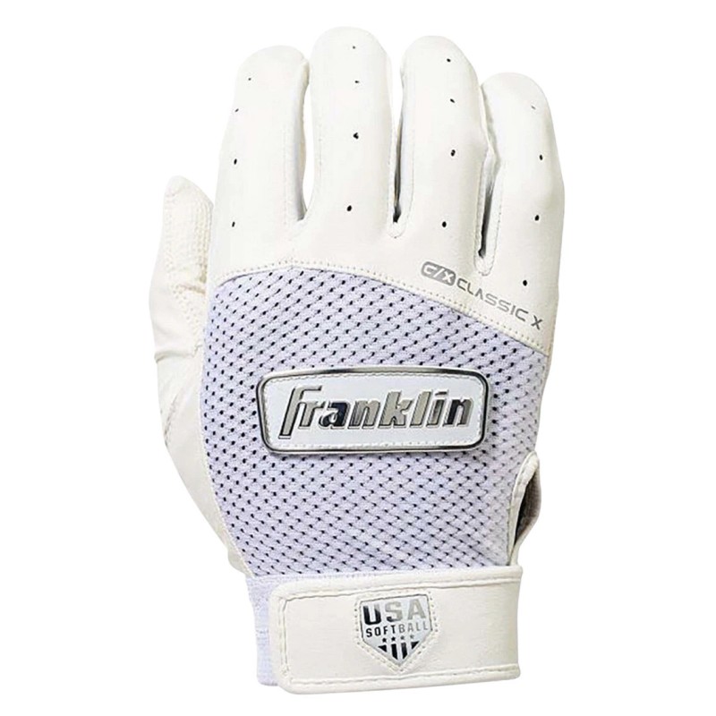 Franklin Sports is bringing its time-honored classic batting gloves to the world of fastpitch softball and changing the game for good with the Classic X FP - USA. These batting gloves are specifically designed and built to fit the contours of the female hand for increased comfort and performance at the plate. The Classic X FP is designed to bring the same level of performance exhibited by our MLB pros to softball diamonds across the country. As the official batting glove of USA Softball, the Classic X FP is made to play at the highest level with unmatched durability to last season after season. Bring your softball game to the next level today with the glove built for you. Change the game and grab your pair of Classic X FP batting gloves today!
