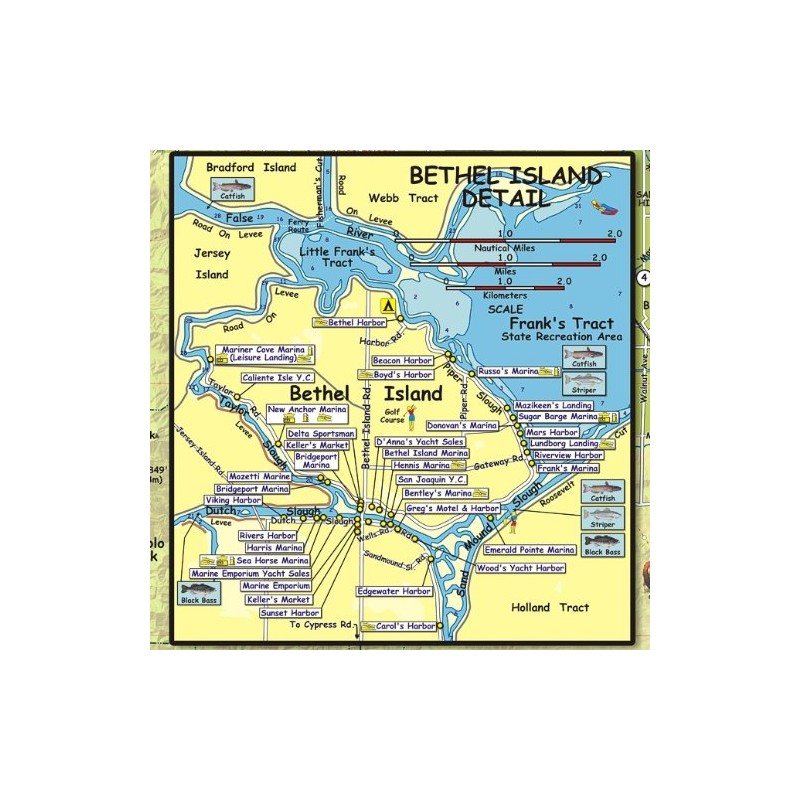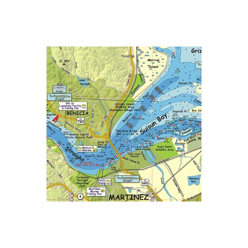 Franko Maps California Delta Waterway Map - Full Color, Watercolor Finish, Topographic & Recreation Map, 19 x 27 Inches