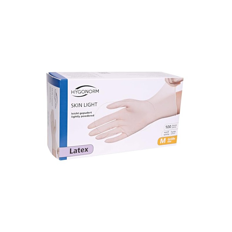 FRANZ MENSCH Hygonorm Skin Light Latex Gloves, Powdered, Cardboard, White, 9/L, L: 24 cm, Pack of 1000