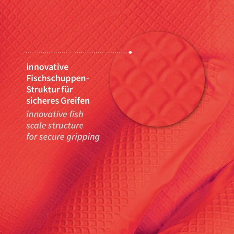 FRANZ MENSCH Hygostar Nitrile Power Grip Gloves, Powder-Free, Pack of 50, Red, 9/L, L: 24 cm, Disposable Gloves, Mechanic, Latex-Free, Fish Scale Structure