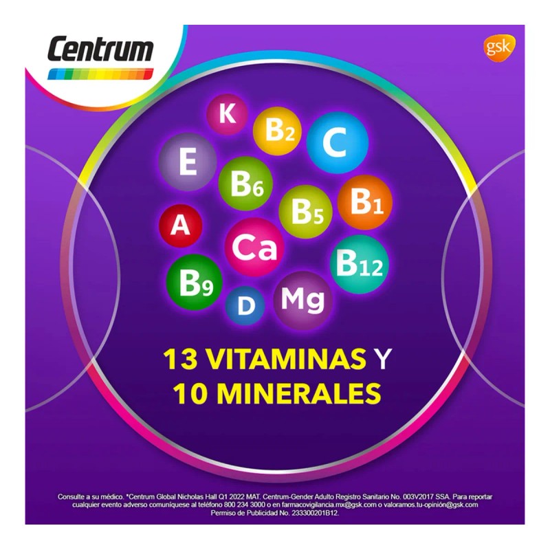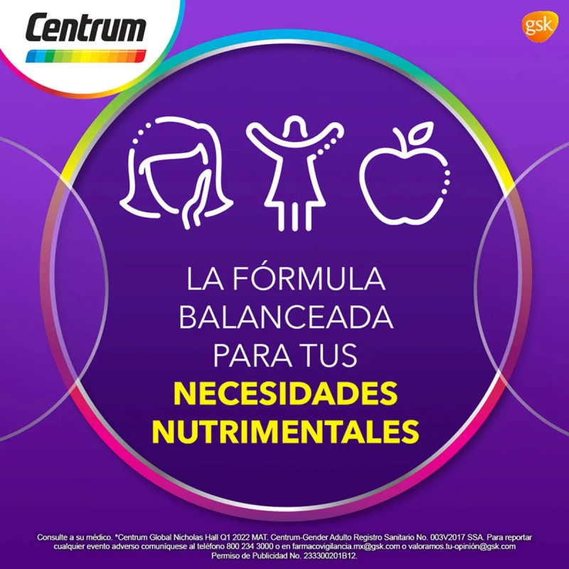 Frasco Multivitamnico Centrum Mujer con Vitamina C Vitamina E Calcio Hierro y...