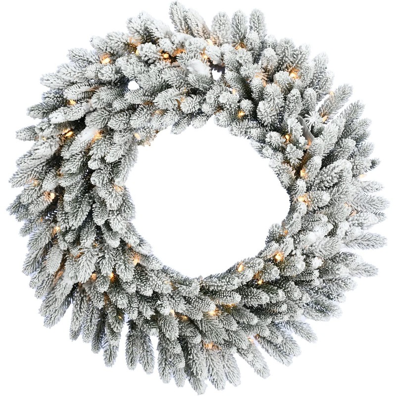 - DECK THE HALLS: Welcome guests with this delightful 24-inch snow flocked faux wreath on your front door or above your fireplace; suitable for indoor or covered outdoor use