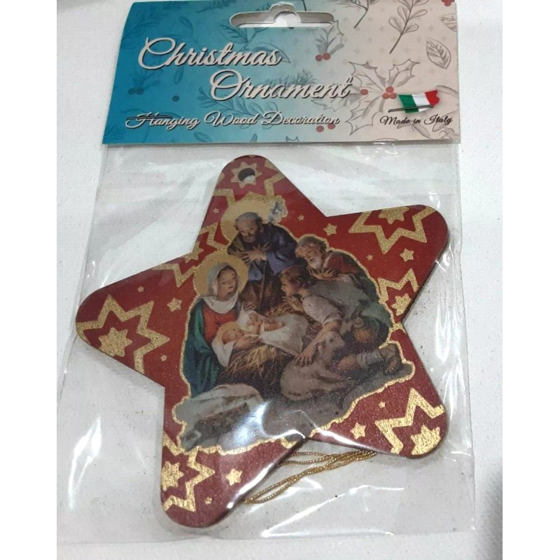 Fratelli Bonella Holy Family / Nativity Ornament Wood, Made In Italy, 3.75" Red & Multi Color
