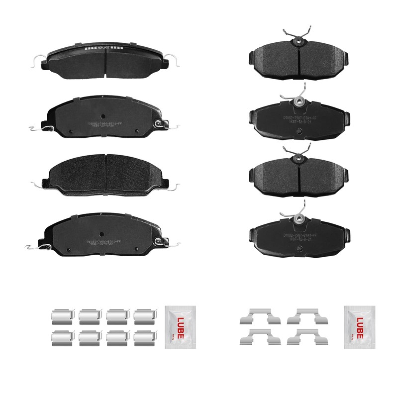 - Package includes: A total set of front and rear ceramic brake pads with hardware kit, save installation time and cost.