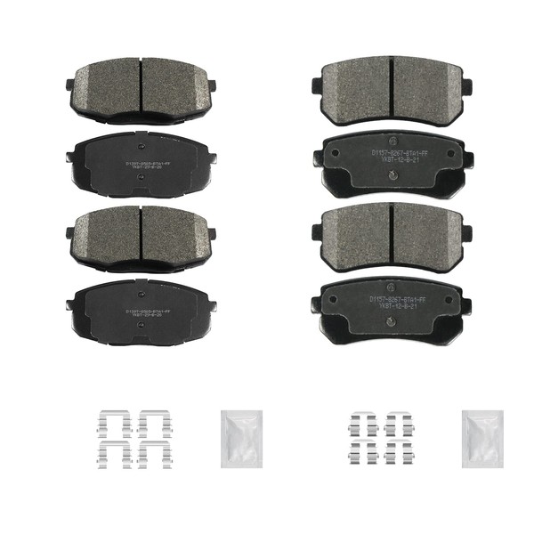 - Package includes: A total set of front and rear ceramic brake pads with hardware kit, save installation time and cost.