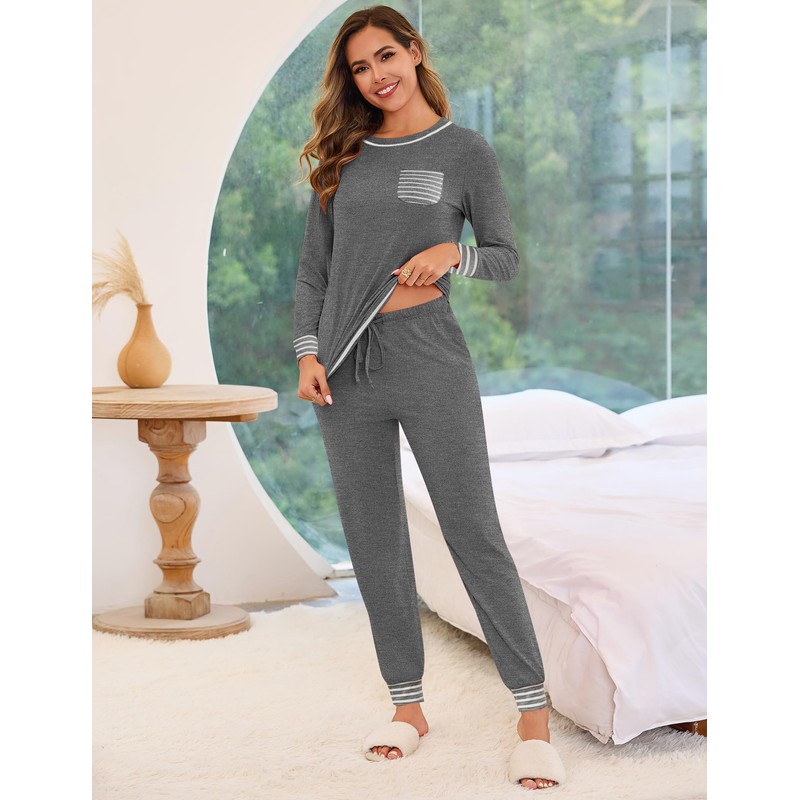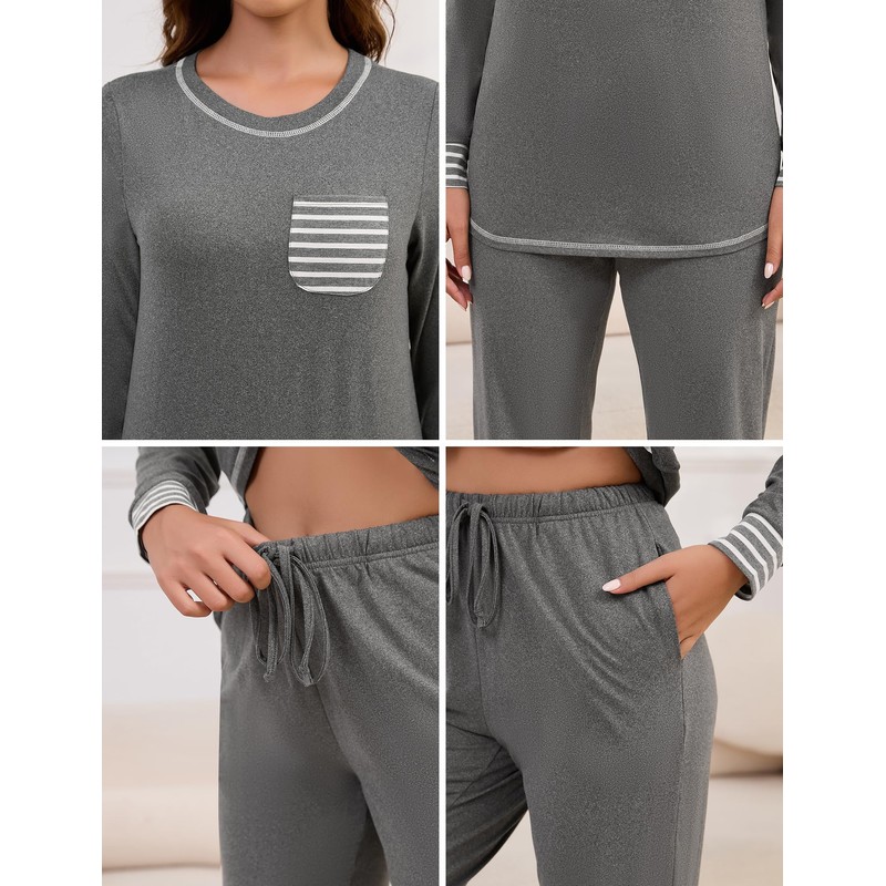 - 【Loungewear Top】This long sleeve sleepwear top features a classic pullover round neck design with a striped contrasting pocket on the chest, drop-shoulder sleeves, and contrasting colors on the body and cuffs for a more fashionable look.