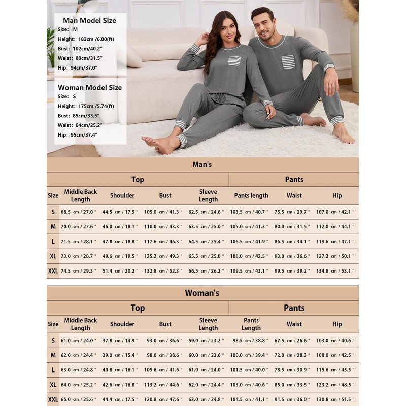 - 【Matching Pajamas for Couples Material】95% polyester and 5% spandex. Which is warm, skin-friendly, breathable, comfortable, super soft and lightweight without feeling heavy. (Tips: This is not a combo order,each pjs set is sold separately. Please note the "men" and "women" options.)