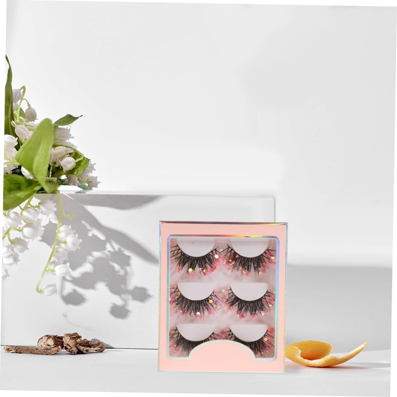 FRCOLOR Natural False Eyelashes Fluffy Wispy Lightweight Glitter Makeup Lashes Kit for Women