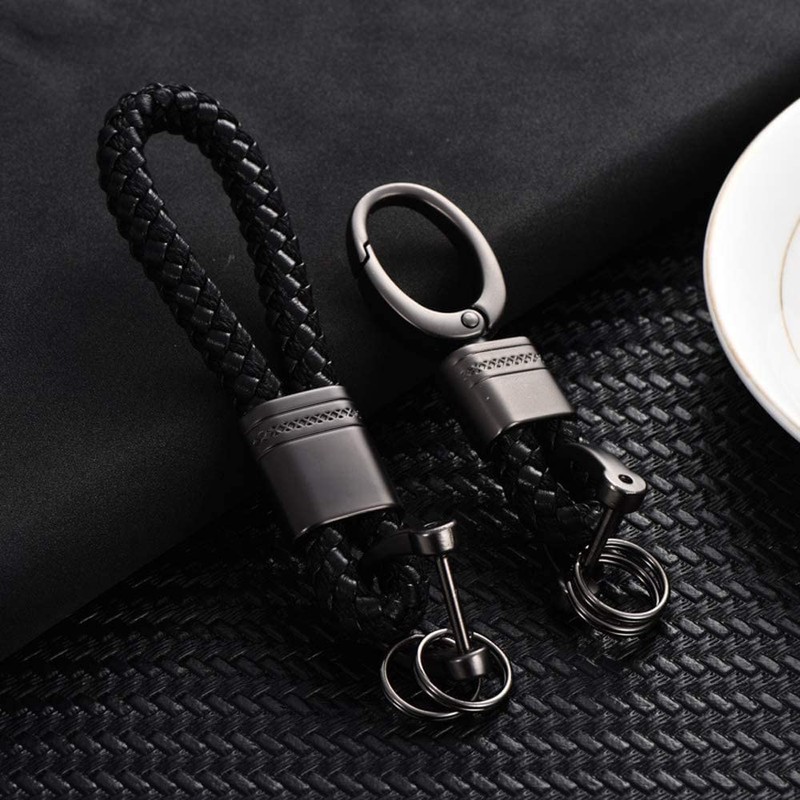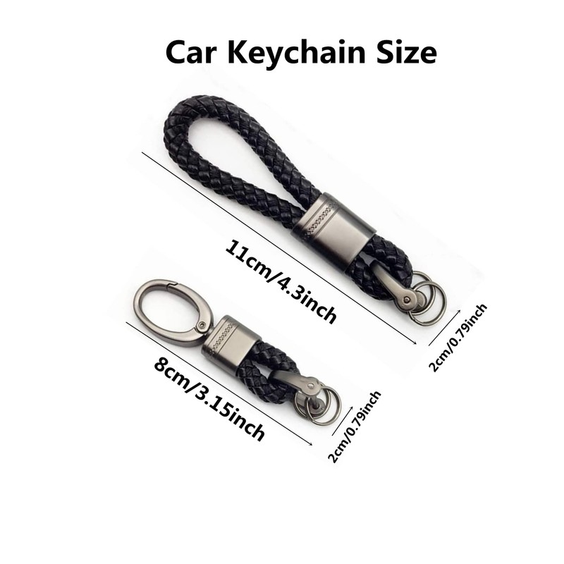 Frdelma Braided Leather Keychain, 2 Pieces Braided Car Key Fob with Screwdrivers for Car Home Office Key (Black, Long and Short)