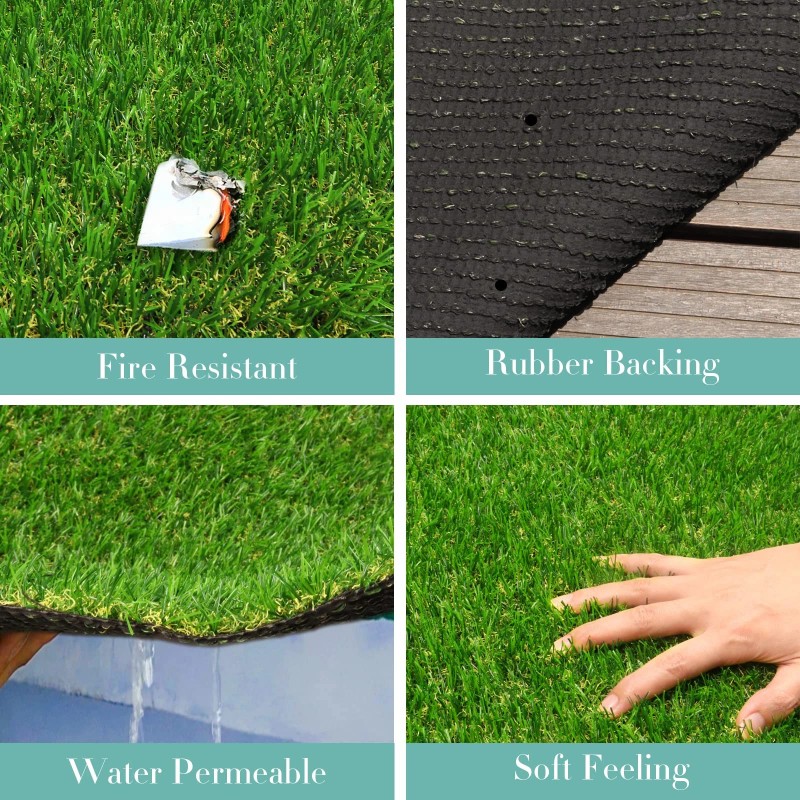 Warranty - We can make custom sizes according your needs. We provide a 5-Year Warranty plan for all artificial grass orders, please contact us freely if any problems! (Note: The artificial turf is made of plastic and will heat up in sunlight. Playing on the lawn is not recommended in high temperature. Make sure artificial turf is not exposed to reflected sunlight windows as this may fuse the turf fibers together.)