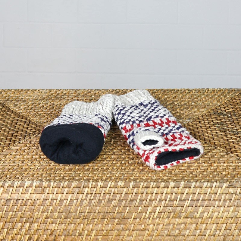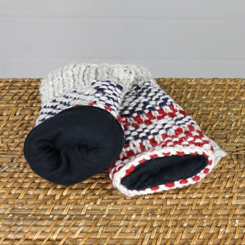 These cuddly leg warmers are the best way to repel the icy cold that turns our hands into a blend of icicles and emery paper every year - pure wool retains body heat between their fibres and creates a small cuddly cave for your hands. In our range you will also find the matching hat - together they make an unbeatable warmth duo! Available in different colours and patterns. Textile care: hand wash, wash separately