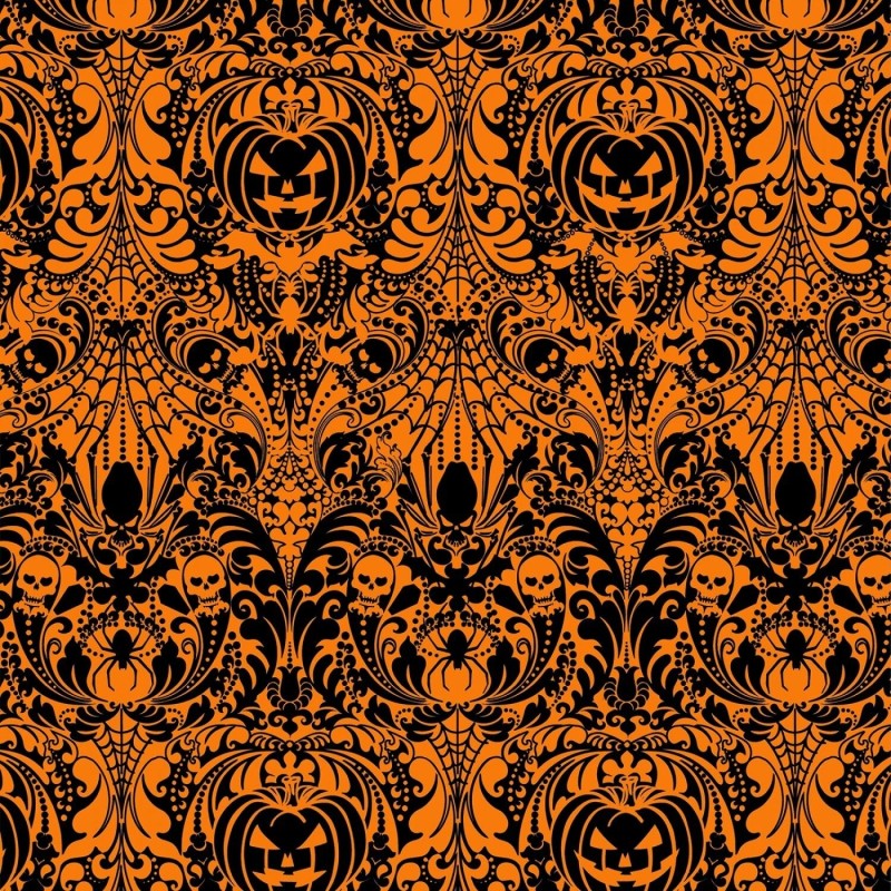 Freckle & Lollie Spell On You FLSY D93 O Orange Hallows Eve Damask Cotton