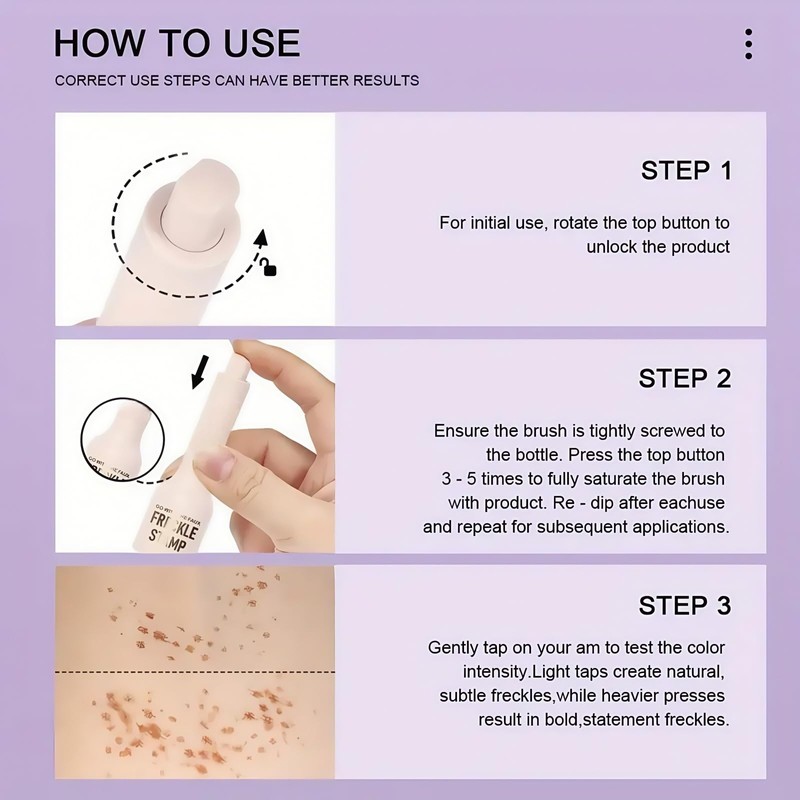 - FRECKLE STAMP: This freckle tint is crafted to mimic the appearance of freckles. The fake freckles deposits delicate dots that look just like real. These makeup pen blend effortlessly makeup for a soft effect