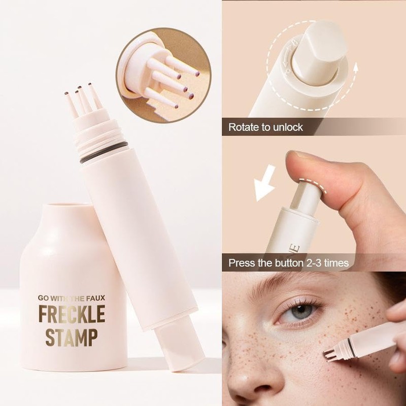 <strong>Create Sun-Kissed Glow with Our Revolutionary Freckle Pen</strong><br><br>Transform your makeup routine with our innovative <strong>freckle stamp</strong> that delivers perfectly placed, natural-looking <strong></strong> in seconds. The <strong>five-point stamp design</strong> ensures effortless application, while our <strong>waterproof formula</strong> guarantees all-day wear without smudging or fading. 🌟<br><br>Our <strong>freckle pen</strong> creates ultra-realistic <strong>faux </strong> that mimic the appearance of sun-kissed skin. The specially formulated <strong>clay-based</strong> blends seamlessly with your natural complexion, whether you prefer subtle <strong>sparkle </strong> or more pronounced <strong>glitter </strong>. ✨<br><br><strong>Key Benefits:</strong><br>1️⃣ <strong>Unique stamp design</strong> for precise, symmetrical application every time<br>2️⃣ <strong>Lifelike freckle effect</strong> that enhances your natural beauty<br>3️⃣ <strong>Long-lasting waterproof formula</strong> that won't transfer or fade<br>4️⃣ <strong>Quick-drying</strong> technology for instant, smudge-proof results<br>5️⃣ <strong>Multiple shades available</strong> to complement all skin tones<br><br>Perfect as a <strong>makeup primer</strong> alternative or to pair with your favourite <strong>under eye concealer</strong> and <strong>makeup setting spray</strong>. The versatile formula works beautifully as <strong>eyebrow makeup</strong> or to create delicate <strong>brow tattoo</strong> effects. 🦋<br><br><strong>How To Use:</strong><br>1️⃣ Prep skin with your regular <strong>make up primer</strong><br>2️⃣ Lightly press the <strong>freckle stamp</strong> onto desired areas<br>3️⃣ Blend edges gently with clean fingertips<br>4️⃣ Set with <strong>makeup </strong> for extended wear<br><br>Create everything from barely-there <strong>freckle tint</strong> to bold <strong> </strong> looks with our buildable formula. The <strong>concealer pen</strong>-like precision makes touch-ups effortless throughout the day. 💖<br><br>Ideal for completing your <strong>face makeup</strong> routine, this multitasking <strong>freckle pen</strong> eliminates the need for messy <strong>peel off eyebrow tint</strong> products. The smudge-proof <strong>freckle tattoo</strong> effect stays put from morning until night. 🌸