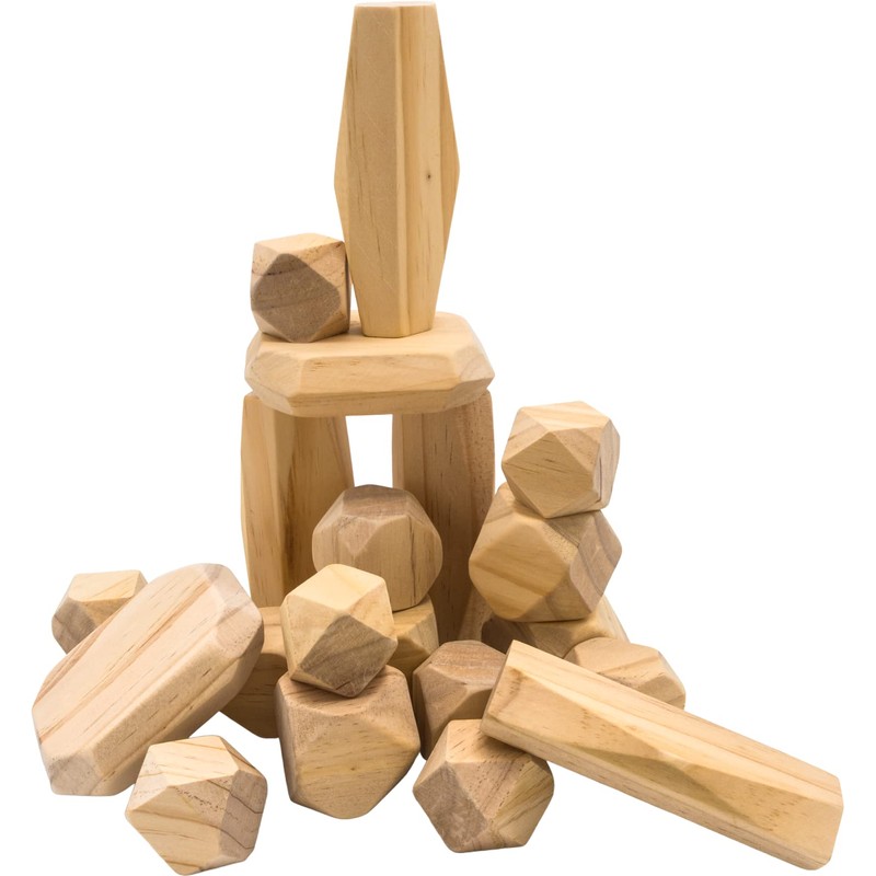 - Child-friendly design: natural materials and good feel. The wooden stones look instantly appealing and their warm, smooth surface makes them very comfortable to hold. Children will be fascinated by the strange shapes and the warm feeling of the wooden stones, which make stacking even more exciting.