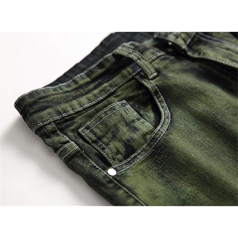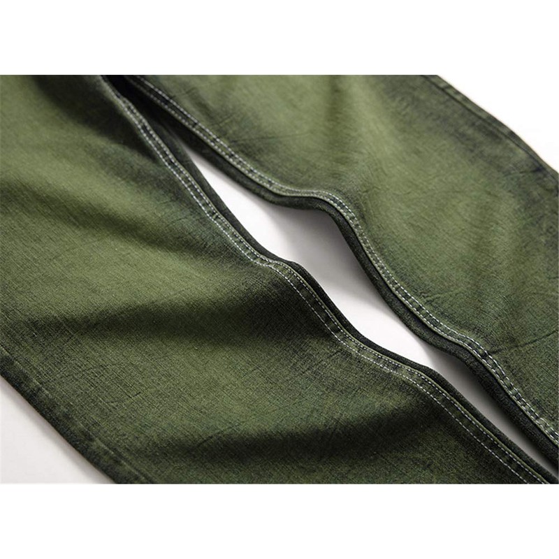 FREDD MARSHALL Men's Mid Rise Stretch Plain Green Zip Front Straight Fit 5-Pockets Comfy Casual Jeans Pants,6671,29