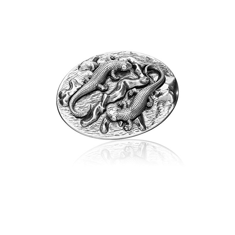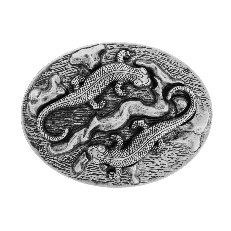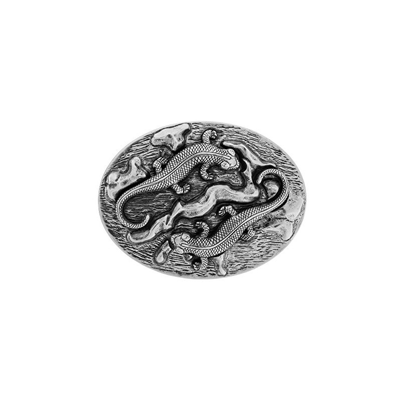 FREDERIC HERMANO Belt Buckle 40 mm Metal Silver Blackened - Buckle Reptile - Pin Buckle for Belt with 4 cm Width - Silver-Coloured Blackened, Blackened metal, Classic