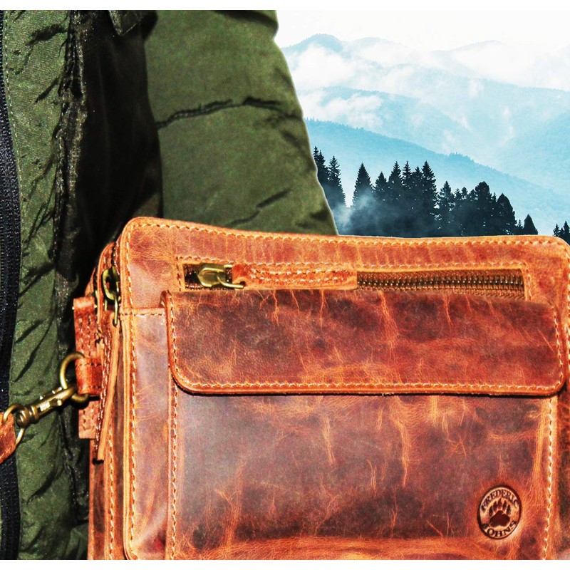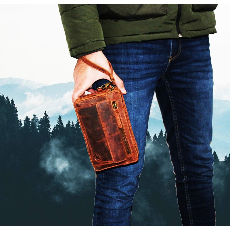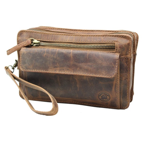 Frédéric Johns Men's Leather Wrist Bag - Handbag, Leather Men's Handbag, Double Chamber, Brown, brown