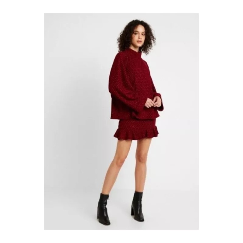 Free People 2pc Sweater & Skirt Set Womens Large Set the Mood Knit Wine Red L