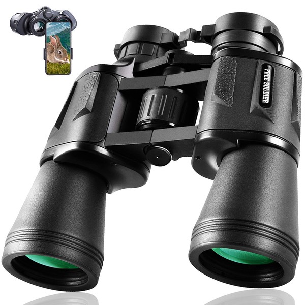 FREE SOLDIER 20 x 50 Binoculars - Adult Binoculars with Night Vision in Low Light, BAK4 Prism FMC Lens, Compact Binoculars with Smartphone Adapter for Hiking, Birds, Watching, Hunting, Black