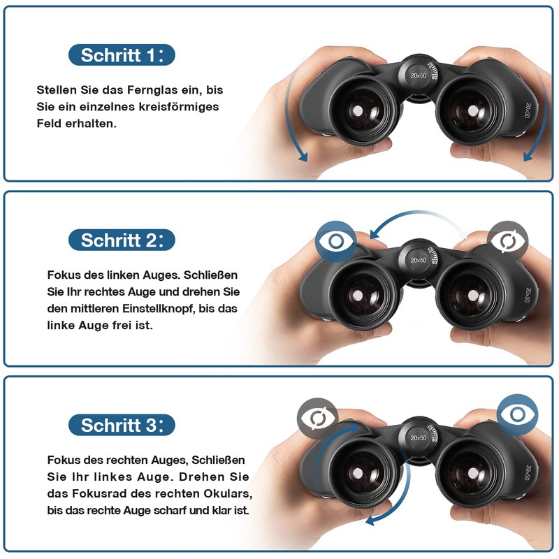 - ★【High quality and easy to focus】 The military binoculars are made of a high-quality metal frame and a rubber-reinforced housing, is life-time waterproof and shockproof. The dioptre system corrects the imbalance in both eyes. The smooth and large central focus wheel makes operation and focusing easy. We offer instructions in German and English, please contact us if you need it.