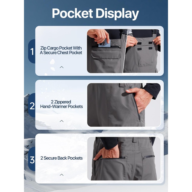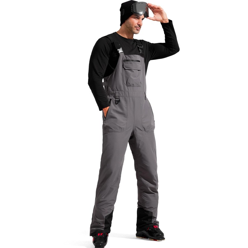 FREE SOLDIER Mens Snow Bibs Ski Pants Softshell Waterproof Insulated Warm Snow Pants Windproof Ski Bib Overalls(Gray X-Large/30)