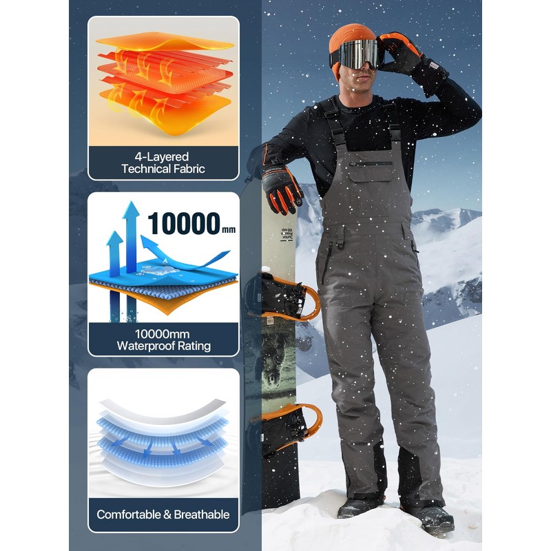 - Perfect for Cold Weather: Ski overalls durable fabric that is not bulky and practically designed to allow ease of mobility. These ski bibs ensure all day comfort to skiing,snowboard,walking,hiking or ride,protects from abrasion