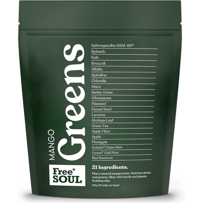 - πππ©ππ‘πππ π‘π¨π§π₯ππ§ππ’π‘ – Free Soul Greens is a blend of 21 nutrient-dense greens, superfoods and adaptogens in one convenient delicious daily serving. Free Soul Greens is one of the most comprehensive superfoods & greens powders on the planet.