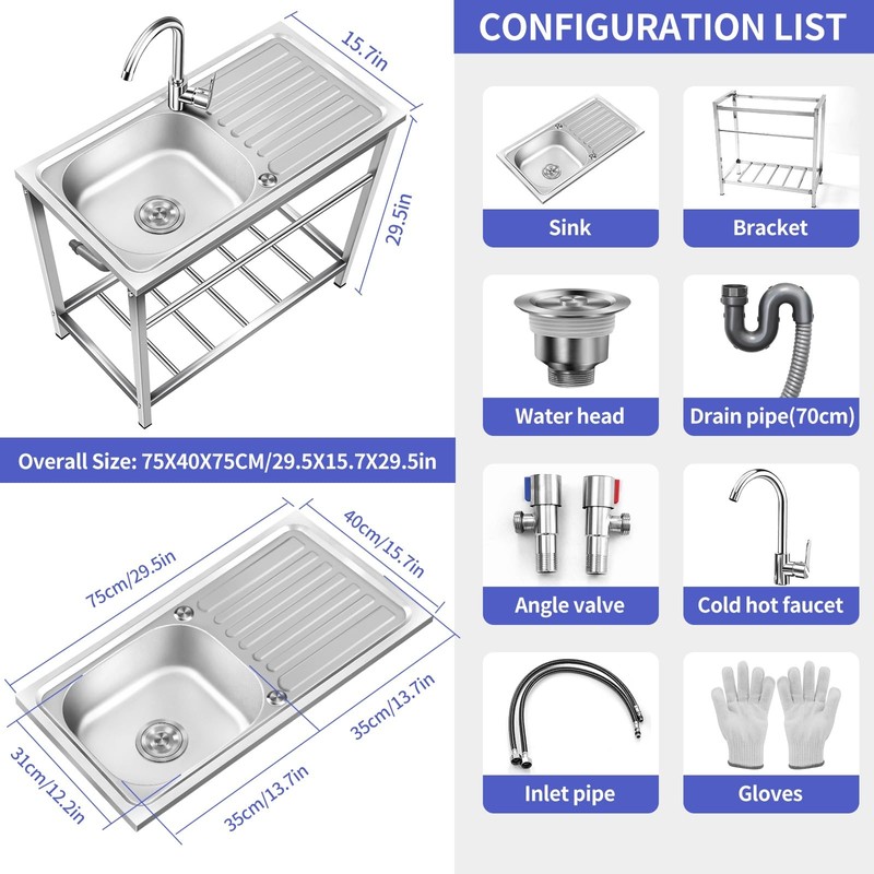 - 【Thoughtful design】Compared with single sink,This is Free Standing more cheaper, more compact for small spaces. And no matter washing dishes, knives, dishes, pots, dishes or cleaning food and vegetables from preparation to processing, you could handle it with the same places.