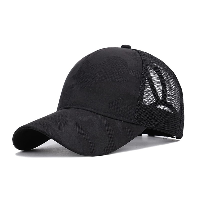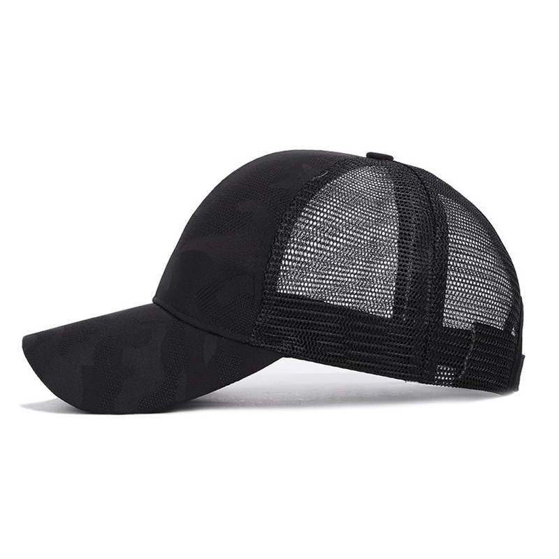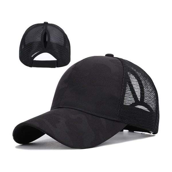 FREEBIRD99 Ponycap Messy High Bun Ponytail Baseball Cap Adjustable Mesh Trucker Hat for Women (Camouflage Black)