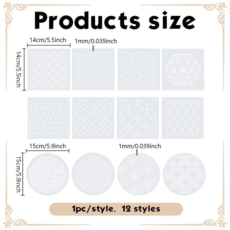 - Sufficient Quantity: There are 12 sashiko templates in the package, 12 different classic Japanese patterns to meet your different sewing needs.