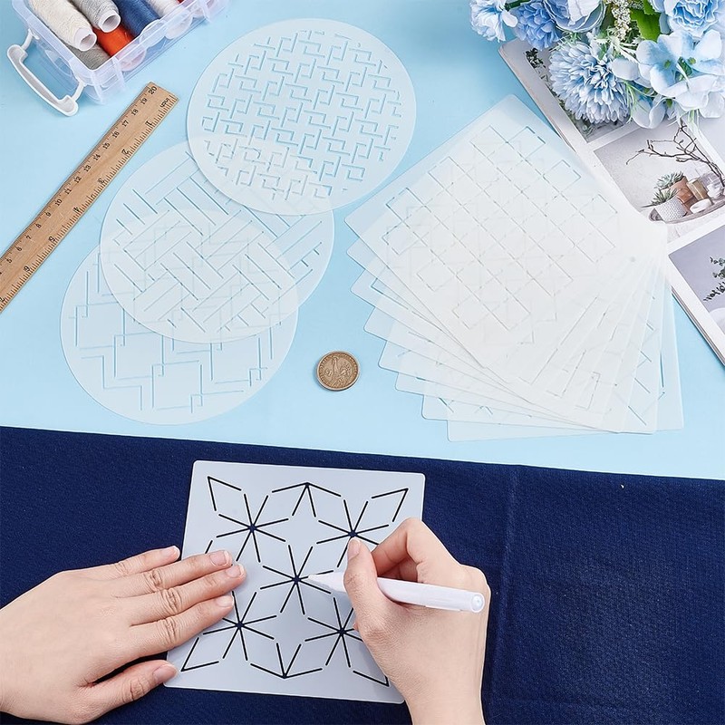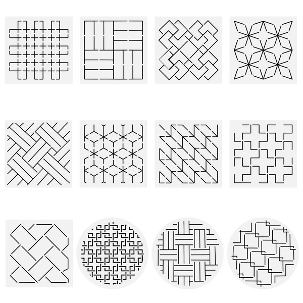 FREEBLOSS 12Pcs Sashiko PET Stencils Sashiko Template Basic Line Template for Hand Quilting Japanese Patterns Templates Embroidery Stencils 5.5 * 5.5''
