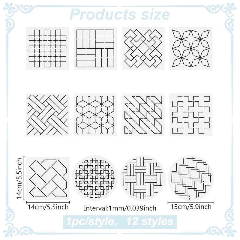 - Sufficient Quantity: There are 12 sashiko templates in the package, 12 different classic Japanese patterns to meet your different sewing needs