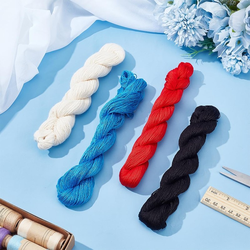 - Packaging Includes: 4 different colors of sashiko threads(white, blue, red, black), each color measuring 100 meters in length.
