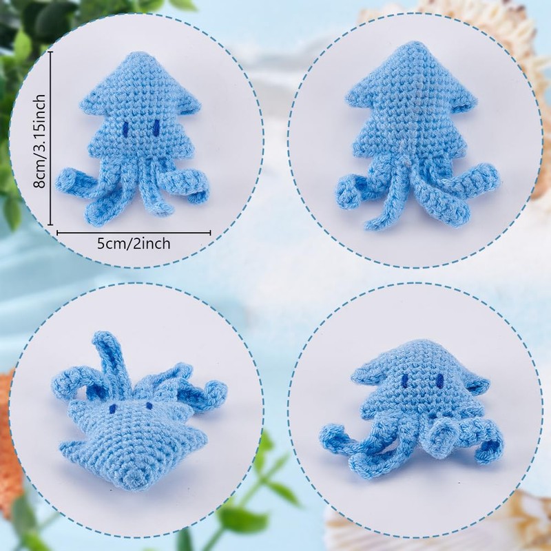 FREEBLOSS 4 Set Crochet Squid Kit Crochet Squid Keychain Kit Crochet Kit for Beginners Squid Crochet Starter Kit for Adults Crochet Kit with Video Tutorial Crochet Kits for Adults Beginner