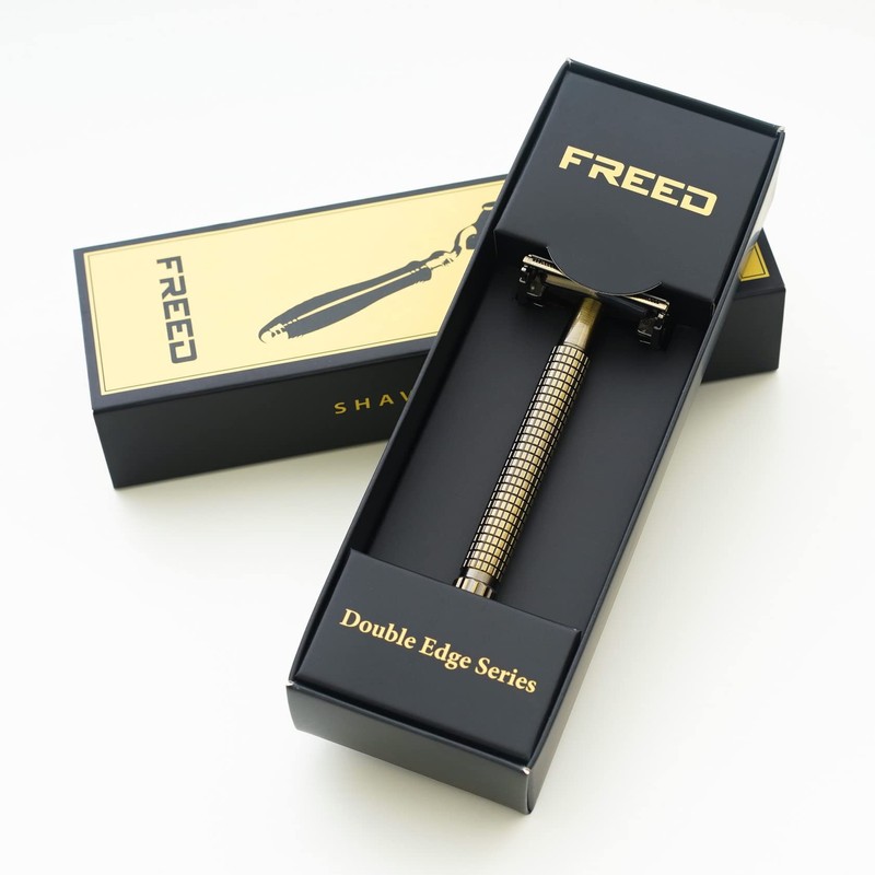 FREED Double Edge Safety Razo,single blade razor,Aluminum alloy material with 10 Japanese 6cr13 Stainless Steel Blade,it's the best gift for men, fathers, or birthday (Bronze)