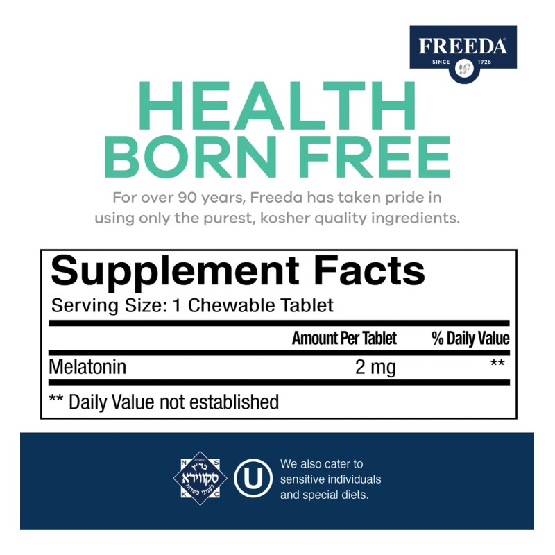 - Mejor Sueño Natural - Melatonina masticable Freeda 2 mg ayuda con insomnio ocasional. Contiene el doble de la dosis de otros suplementos.