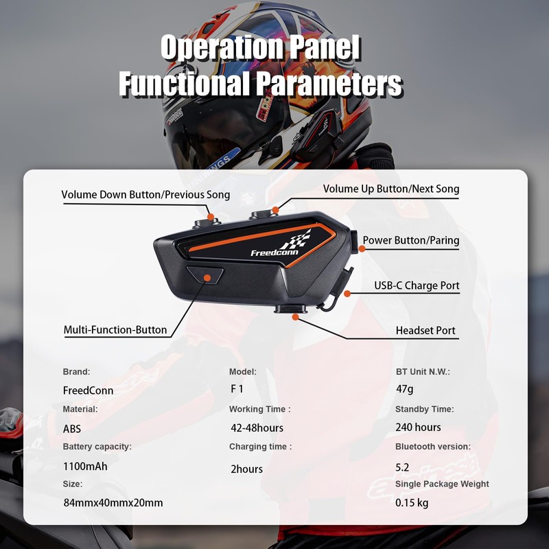 - 📶📶【Qualcomm Dual-Core Bluetooth 5.0 Technology】: Freedconn motorcycle Bluetooth headset is equipped with cutting-edge Qualcomm Dual-Core Bluetooth 5.0 technology, ensuring high-speed transmission, low latency, and minimal distortion even in complex terrains.Our motorcycle intercom also supports the ACC audio decoding protocol, making it compatible with 99% of Bluetooth devices on the market, enabling seamless cross-brand connections, and allowing simultaneous pairing with two mobile phones.