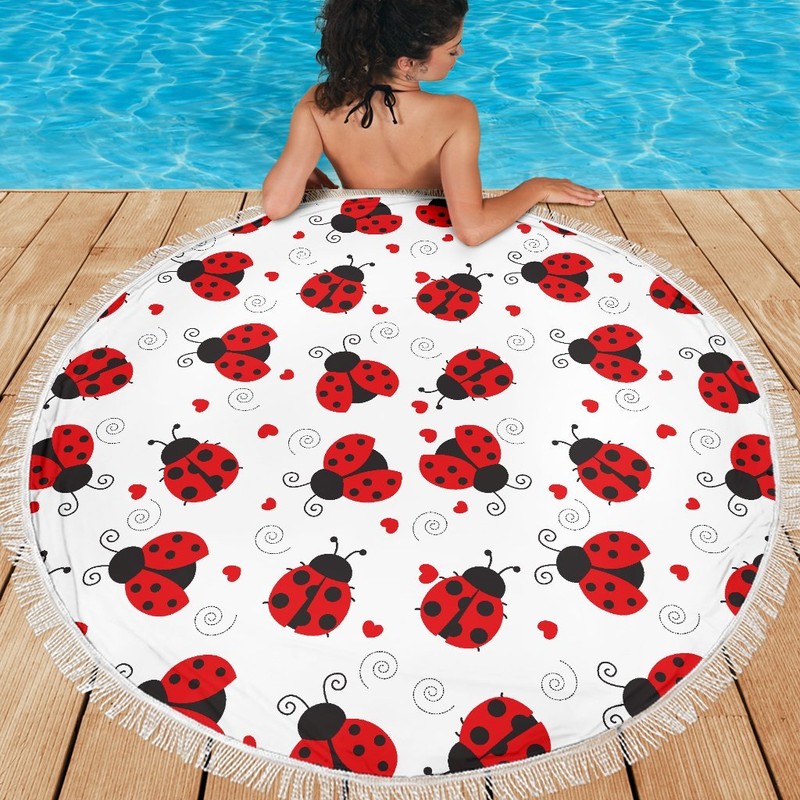 FreedomLook Ladybug Love Comfortable Rounded Beach Pool Picnic Towel Blanket - Multipurpose Outdoor Beach Mat