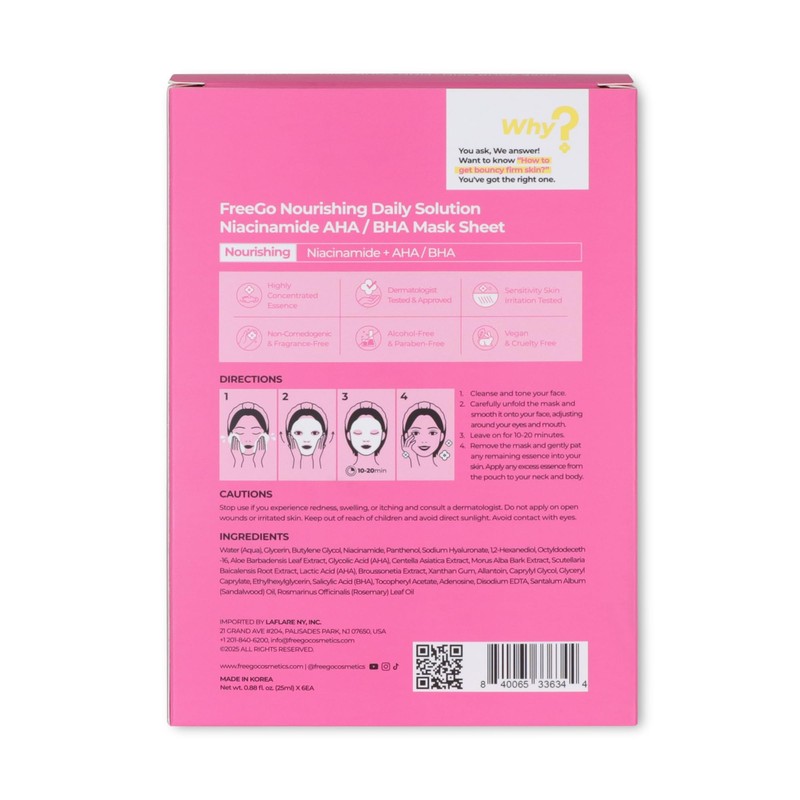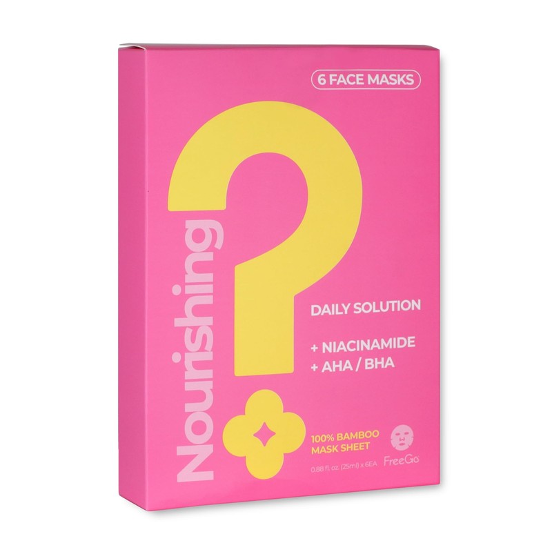 FreeGo Nourishing Daily Solution Niacinamide AHA/BHA Facial Mask Sheet (6-Pack) | K-Beauty Skincare to Bouncy Firm Skin