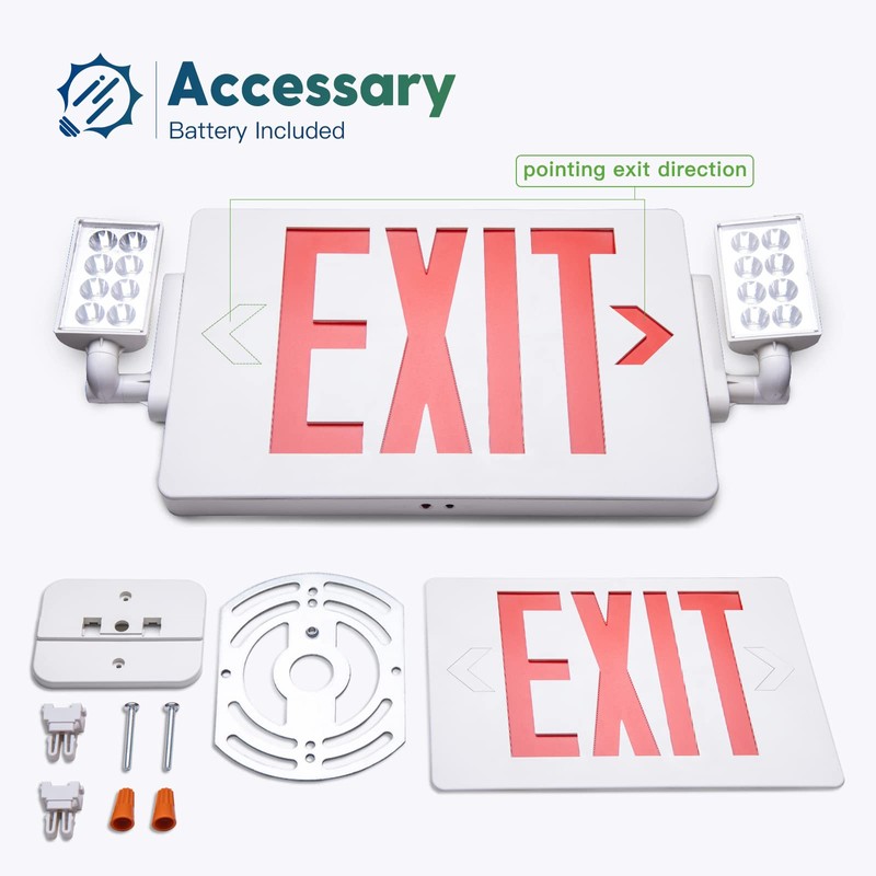 - CONSPICUOUS SIGN: Bright LED lights emergency EXIT signs are visible from up to 100 feet away. Two super bright 360°adjustable floodlights turn off under normal conditions and turn on automatically during power outages.