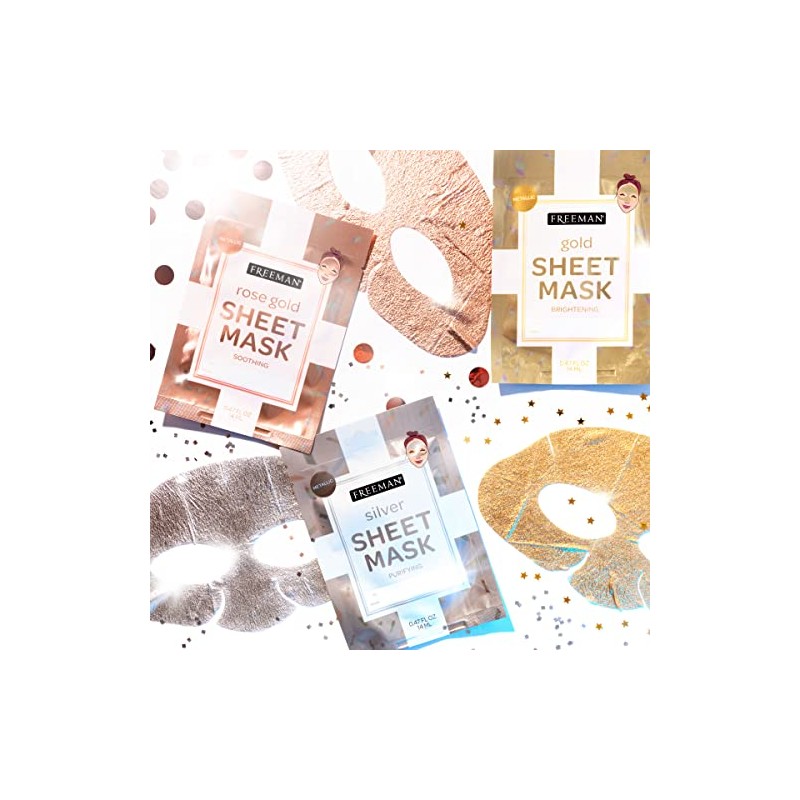 FREEMAN Limited Edition Christmas Metallic Sheet Masks, Variety 12 Pack, Brightening Gold, Purifying Silver, Soothing Rose Gold, Perfect for Wife, Spouse, Girlfriend, or Daughter